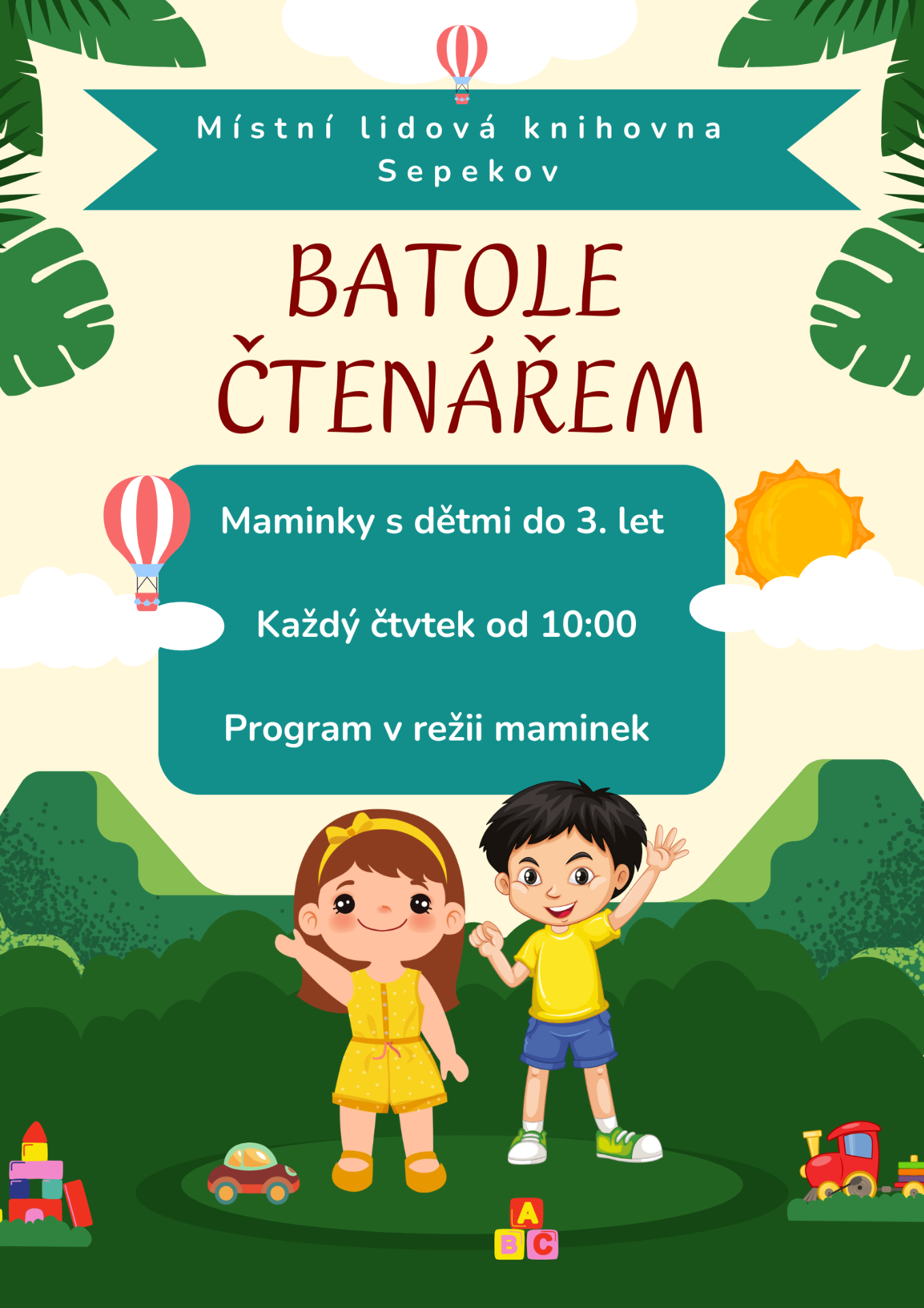 Každý čtvrtek od 10 hodin patří knihovna pouze maminka s malými dětmi. Platí i přes ,,velké,, prázdniny.